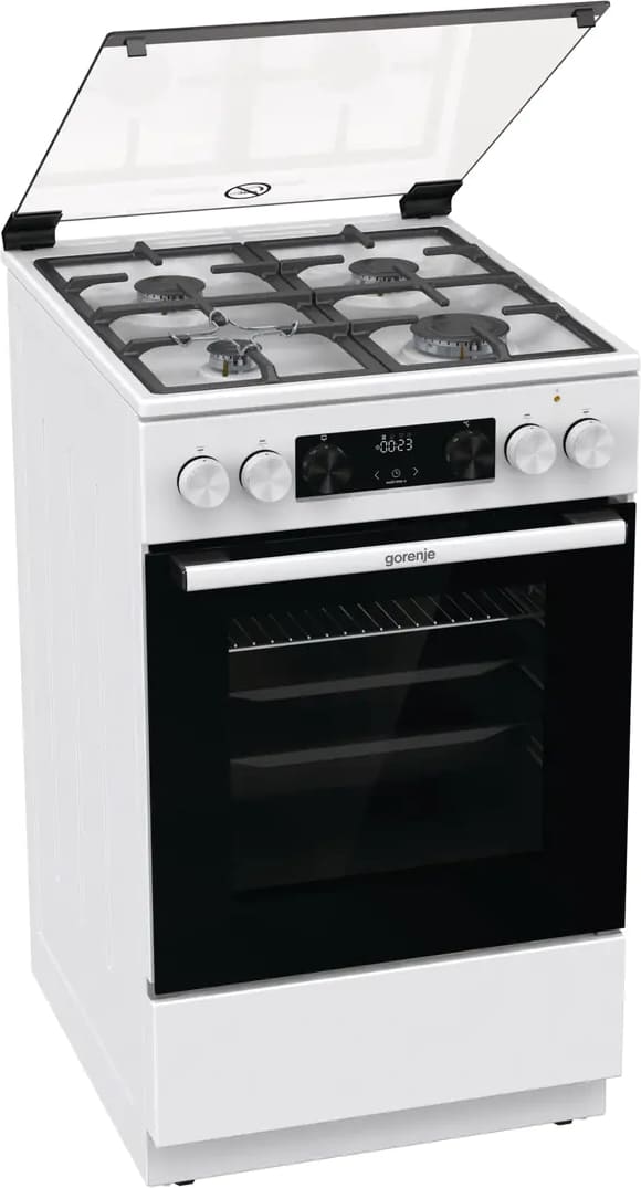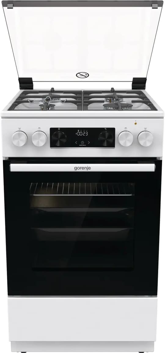 Комбинированная плита Gorenje GK5C40WF — отличный выбор как для квартиры, так и для частного дома. Цвет корпуса белый, он гармонично сочетается с мебелью и техникой похожих оттенков, а также может интересно выглядеть на контрасте с ними. Для управления используется удобная и понятная электронно-механическая система. Благодаря ей выбирать режимы приготовления и настраивать параметры температуры очень просто. Основная информация о процессе отображается на дисплее. Переключатели не только выполняют техническую функцию, но и поддерживают общий дизайн; тип элементов: сенсорные + поворотные.