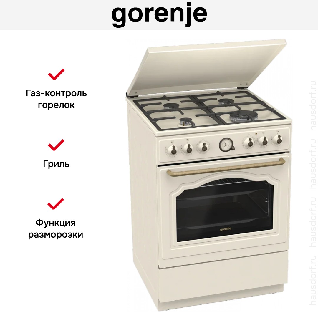 Комбинированная плита Gorenje GKS6C71CLI — отличный выбор как для квартиры, так и для частного дома. Цвет корпуса бежевый, он гармонично сочетается с мебелью и техникой похожих оттенков, а также может интересно выглядеть на контрасте с ними. Для управления используется удобная и понятная механическая система. Благодаря ей выбирать режимы приготовления и настраивать параметры температуры очень просто. Переключатели не только выполняют техническую функцию, но и поддерживают общий дизайн; тип элементов: поворотные.