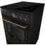 Гораздо разнообразнее представлена фурнитура в моделях в классическом, средиземноморском, деревенском или ретро-дизайне. Так, модели производства Lofra оснащаются фигурными рейлингами и поворотными переключателями цвета латуни, состаренного серебра, хрома, золота. В варочных центрах La Cornue интерес представляет круглая накладная ручка дверцы духовки серебристого цвета. Фурнитурой в стиле ретро оснащаются варочные центры производства Smeg, Kaiser, Bertazzoni, но особенно разнообразны и оригинальны модели производства итальянской компании Restart с фурнитурой из меди и латуни. Каждая такая модель изготавливается по индивидуальному проекту, и покупатель может выбрать цвет и форму переключателей, дверцы и ручек духовых шкафов и другие элементы дизайна.