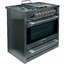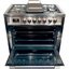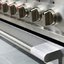 Устройства с тремя духовками также имеют один основной и две дополнительных шкафа разного объема: например, плиты Bertazzoni оснащены большой духовкой объемом 69 литров, средней объемом 54 литра и малой объемом 24 литра. Духовки располагаются в два ряда: две меньшие духовки в одном ряду, большая и ящик для посуды в другом.