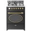Гораздо разнообразнее представлена фурнитура в моделях в классическом, средиземноморском, деревенском или ретро-дизайне. Так, модели производства Lofra оснащаются фигурными рейлингами и поворотными переключателями цвета латуни, состаренного серебра, хрома, золота. В варочных центрах La Cornue интерес представляет круглая накладная ручка дверцы духовки серебристого цвета. Фурнитурой в стиле ретро оснащаются варочные центры производства Smeg, Kaiser, Bertazzoni, но особенно разнообразны и оригинальны модели производства итальянской компании Restart с фурнитурой из меди и латуни. Каждая такая модель изготавливается по индивидуальному проекту, и покупатель может выбрать цвет и форму переключателей, дверцы и ручек духовых шкафов и другие элементы дизайна.