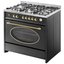 Гораздо разнообразнее представлена фурнитура в моделях в классическом, средиземноморском, деревенском или ретро-дизайне. Так, модели производства Lofra оснащаются фигурными рейлингами и поворотными переключателями цвета латуни, состаренного серебра, хрома, золота. В варочных центрах La Cornue интерес представляет круглая накладная ручка дверцы духовки серебристого цвета. Фурнитурой в стиле ретро оснащаются варочные центры производства Smeg, Kaiser, Bertazzoni, но особенно разнообразны и оригинальны модели производства итальянской компании Restart с фурнитурой из меди и латуни. Каждая такая модель изготавливается по индивидуальному проекту, и покупатель может выбрать цвет и форму переключателей, дверцы и ручек духовых шкафов и другие элементы дизайна.