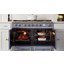 Устройства с тремя духовками также имеют один основной и две дополнительных шкафа разного объема: например, плиты Bertazzoni оснащены большой духовкой объемом 69 литров, средней объемом 54 литра и малой объемом 24 литра. Духовки располагаются в два ряда: две меньшие духовки в одном ряду, большая и ящик для посуды в другом.