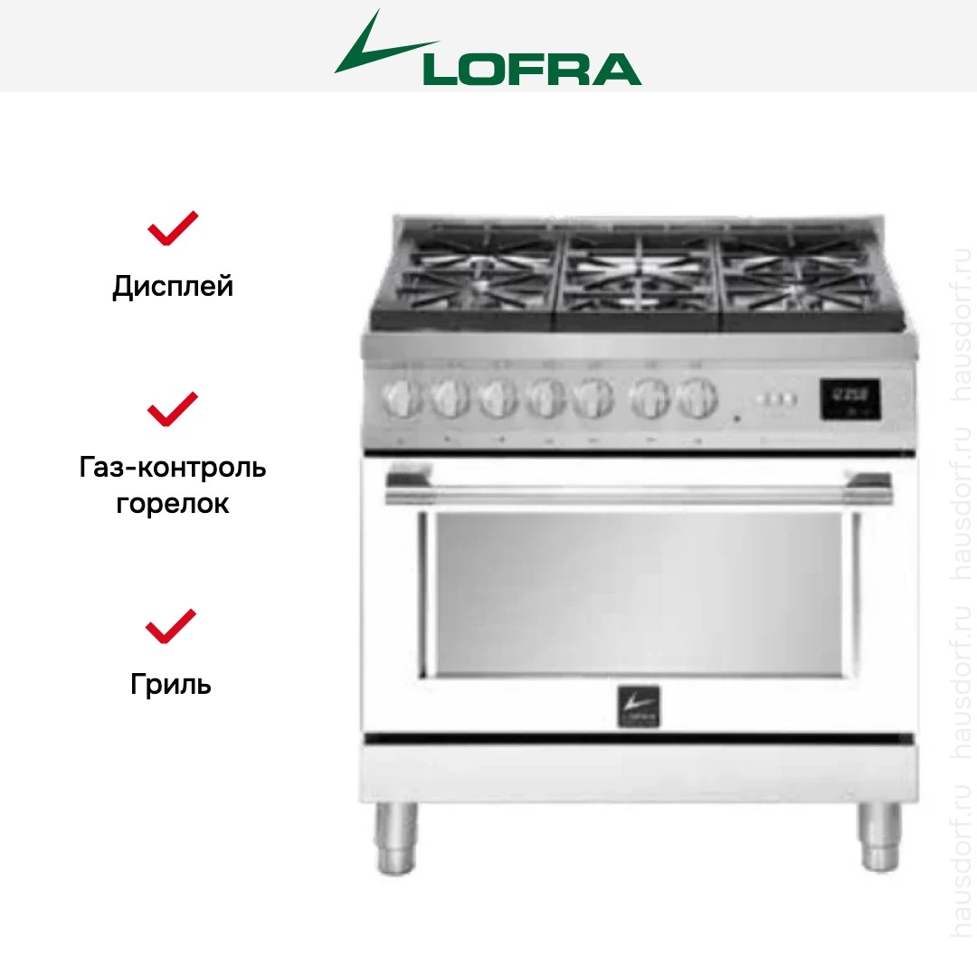 Газовая плита Lofra ABPG96WGVGT/AEO — отличный выбор как для квартиры, так и для частного дома. Цвет корпуса белый жемчуг, он гармонично сочетается с мебелью и техникой похожих оттенков, а также может интересно выглядеть на контрасте с ними. Для управления используется удобная и понятная механическая система. Благодаря ей выбирать режимы приготовления и настраивать параметры температуры очень просто. Основная информация о процессе отображается на дисплее. Переключатели не только выполняют техническую функцию, но и поддерживают общий дизайн; тип элементов: поворотные + кнопки.