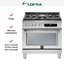 Устройства с тремя духовками также имеют один основной и две дополнительных шкафа разного объема: например, плиты Bertazzoni оснащены большой духовкой объемом 69 литров, средней объемом 54 литра и малой объемом 24 литра. Духовки располагаются в два ряда: две меньшие духовки в одном ряду, большая и ящик для посуды в другом.