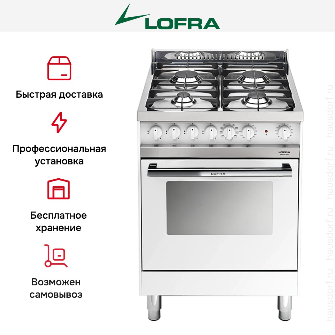 Комбинированная плита Lofra MB66MF — отличный выбор как для квартиры, так и для частного дома. Цвет корпуса белый жемчуг, он гармонично сочетается с мебелью и техникой похожих оттенков, а также может интересно выглядеть на контрасте с ними. Для управления используется удобная и понятная механическая система. Благодаря ей выбирать режимы приготовления и настраивать параметры температуры очень просто. Переключатели не только выполняют техническую функцию, но и поддерживают общий дизайн; тип элементов: поворотные.