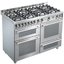 Ширина варочных центров — параметр, которых варьируется в самых больших пределах. Она зависит прежде всего от характеристик модели, в частности, от количества духовок. Производители предлагают модели минимальной шириной 59-60 см с одной духовкой. В магазинах также представлены модели с одной духовкой увеличенной ширины, которая достигает 90 см. Такую же ширину могут иметь варочные центры с двумя духовками, расположенными бок о бок. Модели Lofra с тремя духовками имеют ширину 120 см, а максимальная ширина около 196-200 см отличает модели Restart с дровяной печью и несколькими духовками.