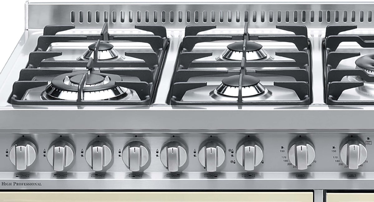 Гораздо разнообразнее представлена фурнитура в моделях в классическом, средиземноморском, деревенском или ретро-дизайне. Так, модели производства Lofra оснащаются фигурными рейлингами и поворотными переключателями цвета латуни, состаренного серебра, хрома, золота. В варочных центрах La Cornue интерес представляет круглая накладная ручка дверцы духовки серебристого цвета. Фурнитурой в стиле ретро оснащаются варочные центры производства Smeg, Kaiser, Bertazzoni, но особенно разнообразны и оригинальны модели производства итальянской компании Restart с фурнитурой из меди и латуни. Каждая такая модель изготавливается по индивидуальному проекту, и покупатель может выбрать цвет и форму переключателей, дверцы и ручек духовых шкафов и другие элементы дизайна.