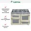 Ширина варочных центров — параметр, которых варьируется в самых больших пределах. Она зависит прежде всего от характеристик модели, в частности, от количества духовок. Производители предлагают модели минимальной шириной 59-60 см с одной духовкой. В магазинах также представлены модели с одной духовкой увеличенной ширины, которая достигает 90 см. Такую же ширину могут иметь варочные центры с двумя духовками, расположенными бок о бок. Модели Lofra с тремя духовками имеют ширину 120 см, а максимальная ширина около 196-200 см отличает модели Restart с дровяной печью и несколькими духовками.