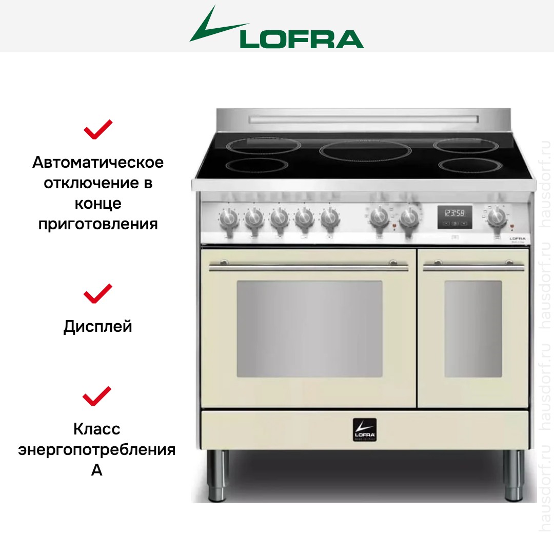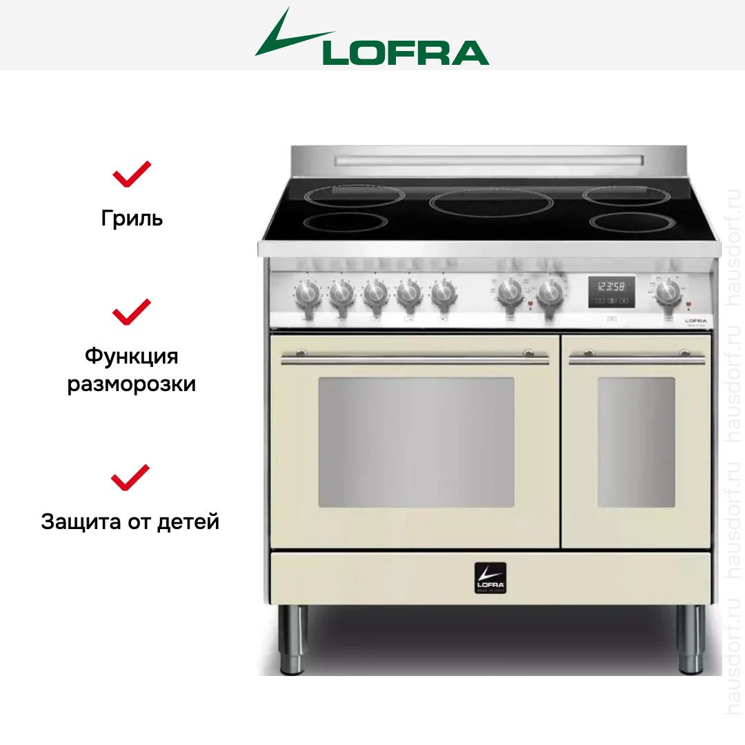 Электрическая плита Lofra PBID96MFTE/5I — отличный выбор как для квартиры, так и для частного дома. Цвет корпуса бежевый, он гармонично сочетается с мебелью и техникой похожих оттенков, а также может интересно выглядеть на контрасте с ними. Для управления используется удобная и понятная электронно-механическая система. Благодаря ей выбирать режимы приготовления и настраивать параметры температуры очень просто. Основная информация о процессе отображается на дисплее. Переключатели не только выполняют техническую функцию, но и поддерживают общий дизайн; тип элементов: сенсорные + поворотные.