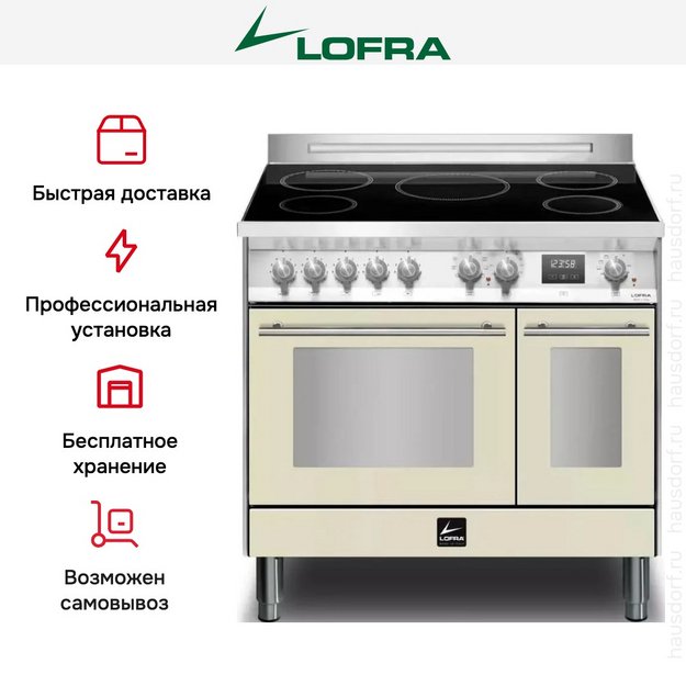 Варочный центр Лофра оборудован несколькими духовками; одну из них можно использовать как основную на постоянной основе, другие как дополнительные. Тип нагрева в камере — электрический. Большое внутреннее пространство позволяет готовить сразу несколько блюд или целиком запекать птицу, использовать объемную посуду. Вместимость составляет 101 л. Размещайте противни на разной высоте в зависимости от режима или желаемого результата. Общее количество уровней: 4. Основные функции, которые уже заложены производителем: Освещение, Работа вентилятора, Верхний и нижний нагрев, Гриль + вентилятор, Нижний нагрев, Размораживание, Конвекция, Гриль, Конвекция с кольцевым нагревательным элементом, Большой электрический гриль, Малый гриль, Верхний нагрев.