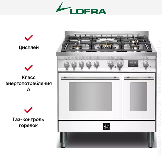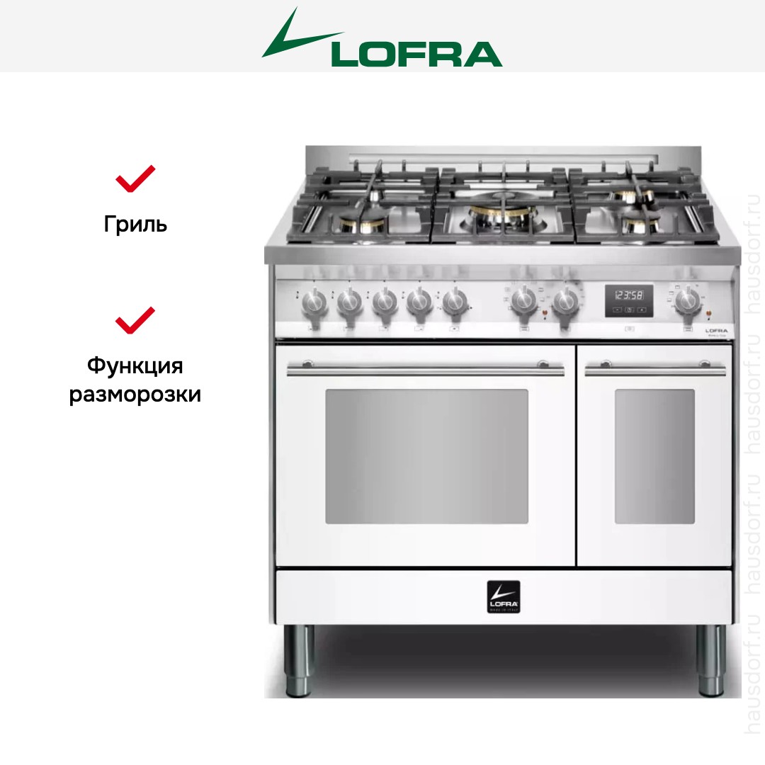 Комбинированная плита Lofra PBPD96MFTE/AEO — отличный выбор как для квартиры, так и для частного дома. Цвет корпуса белый, он гармонично сочетается с мебелью и техникой похожих оттенков, а также может интересно выглядеть на контрасте с ними. Для управления используется удобная и понятная электронно-механическая система. Благодаря ей выбирать режимы приготовления и настраивать параметры температуры очень просто. Основная информация о процессе отображается на дисплее. Переключатели не только выполняют техническую функцию, но и поддерживают общий дизайн; тип элементов: сенсорные + поворотные.