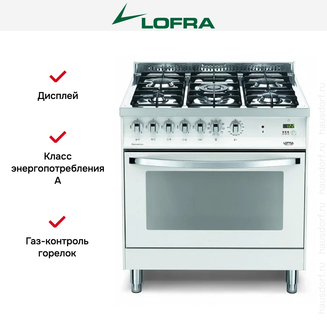 Комбинированная плита Lofra PBPG86MFT/C — отличный выбор как для квартиры, так и для частного дома. Цвет корпуса белый жемчуг, он гармонично сочетается с мебелью и техникой похожих оттенков, а также может интересно выглядеть на контрасте с ними. Для управления используется удобная и понятная механическая система. Благодаря ей выбирать режимы приготовления и настраивать параметры температуры очень просто. Основная информация о процессе отображается на дисплее. Переключатели не только выполняют техническую функцию, но и поддерживают общий дизайн; тип элементов: поворотные.