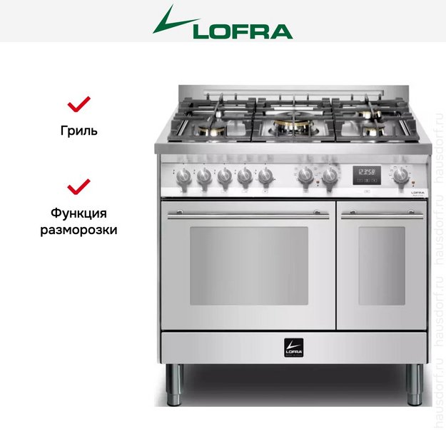 Варочный центр Лофра оборудован несколькими духовками; одну из них можно использовать как основную на постоянной основе, другие как дополнительные. Тип нагрева в камере — электрический. Большое внутреннее пространство позволяет готовить сразу несколько блюд или целиком запекать птицу, использовать объемную посуду. Вместимость составляет 107 л. Размещайте противни на разной высоте в зависимости от режима или желаемого результата. Общее количество уровней: 4. Основные функции, которые уже заложены производителем: Освещение, Работа вентилятора, Верхний и нижний нагрев, Гриль + вентилятор, Нижний нагрев, Размораживание, Конвекция, Гриль, Конвекция с кольцевым нагревательным элементом, Большой электрический гриль, Малый гриль, Верхний нагрев.