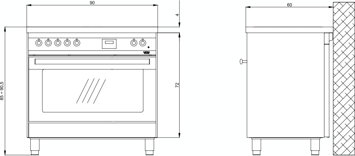 - Габариты, ВхШхГ (см): 85-90.5х90х60