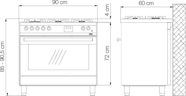 Ширина варочных центров — параметр, которых варьируется в самых больших пределах. Она зависит прежде всего от характеристик модели, в частности, от количества духовок. Производители предлагают модели минимальной шириной 59-60 см с одной духовкой. В магазинах также представлены модели с одной духовкой увеличенной ширины, которая достигает 90 см. Такую же ширину могут иметь варочные центры с двумя духовками, расположенными бок о бок. Модели Lofra с тремя духовками имеют ширину 120 см, а максимальная ширина около 196-200 см отличает модели Restart с дровяной печью и несколькими духовками.