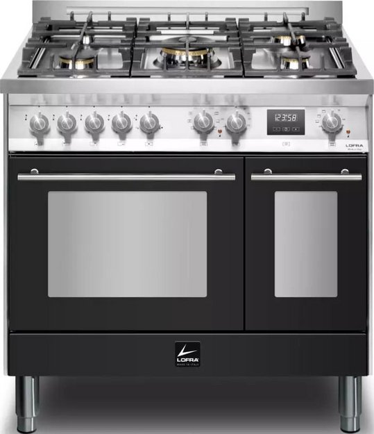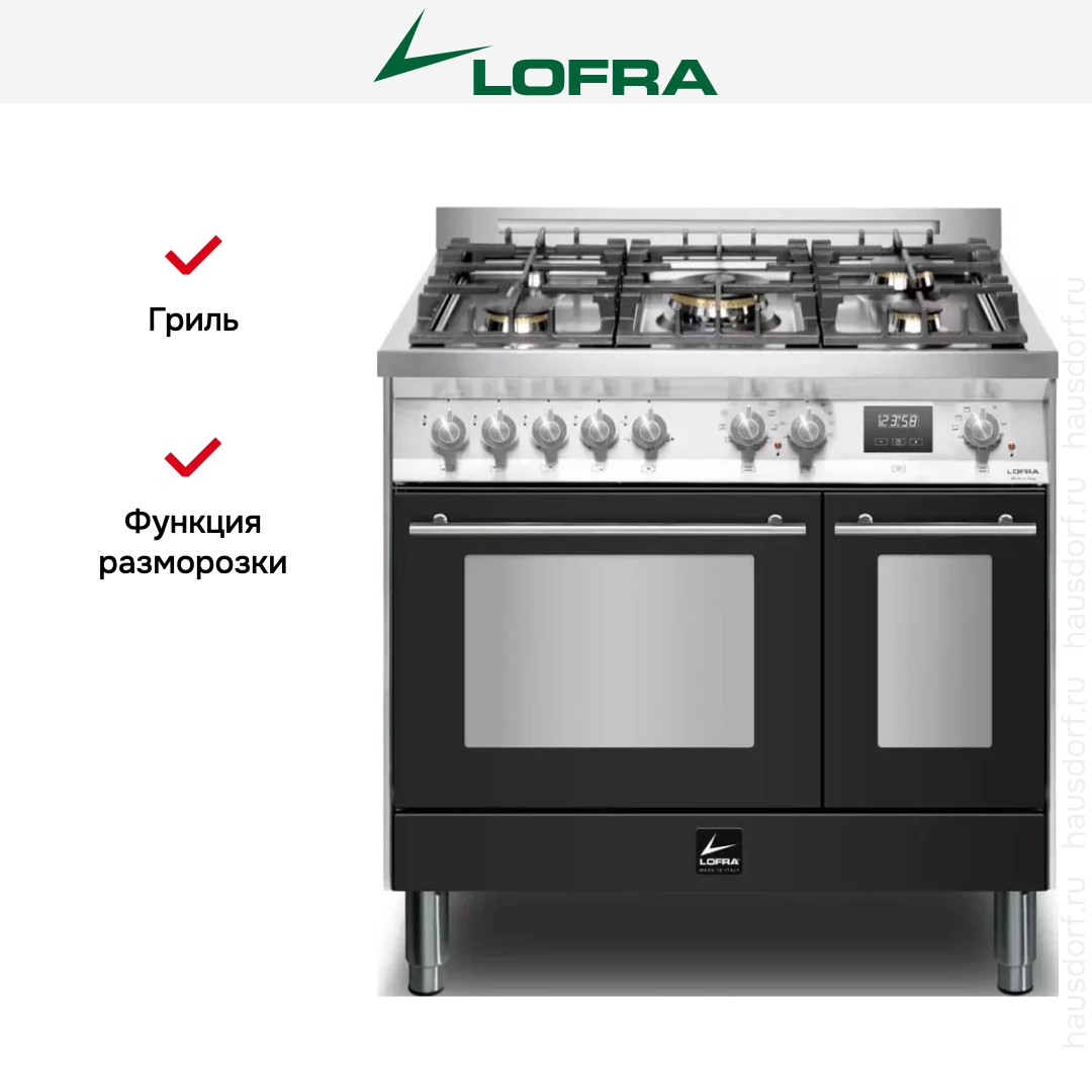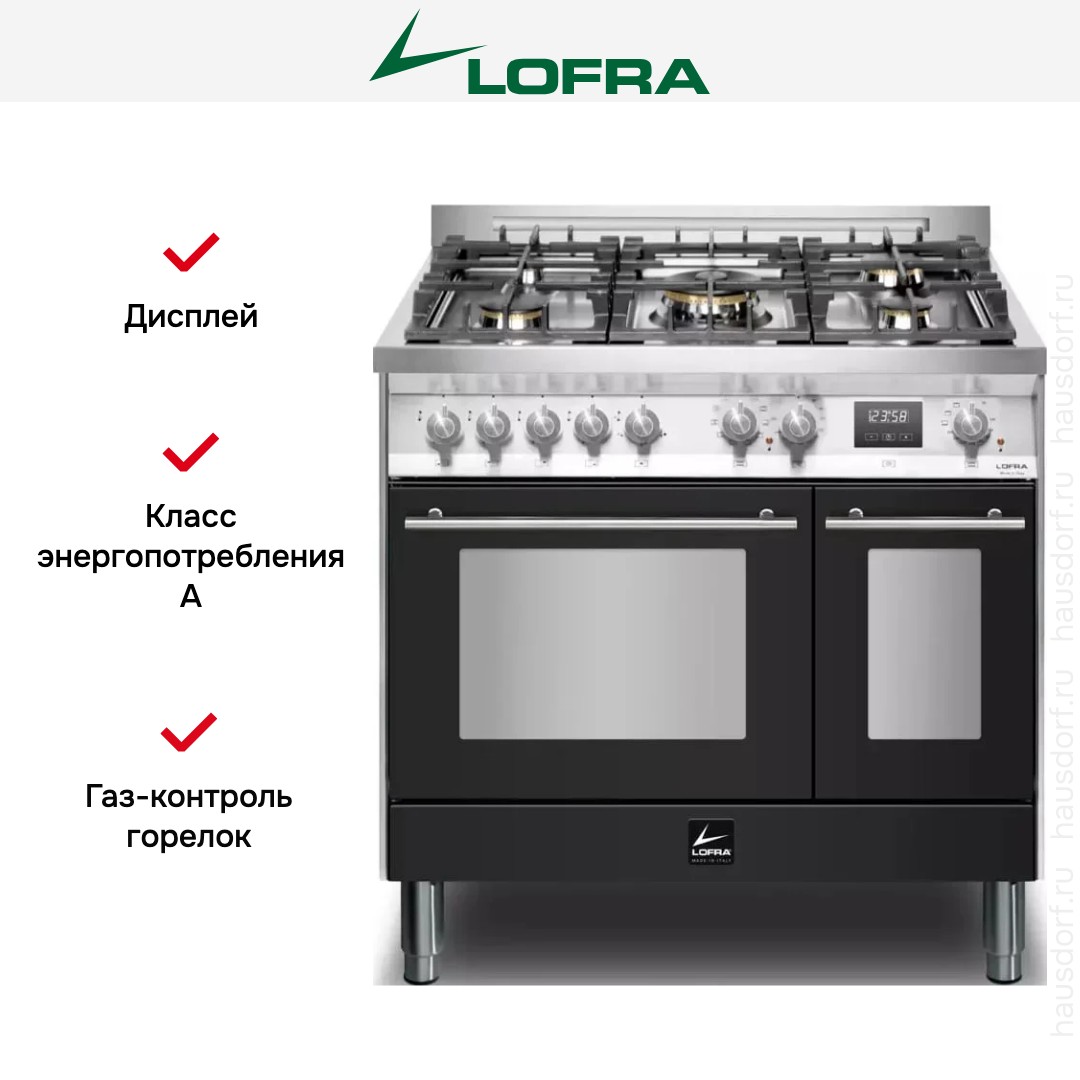 Комбинированная плита Lofra PNMD96MFTE/AEO — отличный выбор как для квартиры, так и для частного дома. Цвет корпуса черный, он гармонично сочетается с мебелью и техникой похожих оттенков, а также может интересно выглядеть на контрасте с ними. Для управления используется удобная и понятная электронно-механическая система. Благодаря ей выбирать режимы приготовления и настраивать параметры температуры очень просто. Основная информация о процессе отображается на дисплее. Переключатели не только выполняют техническую функцию, но и поддерживают общий дизайн; тип элементов: сенсорные + поворотные.