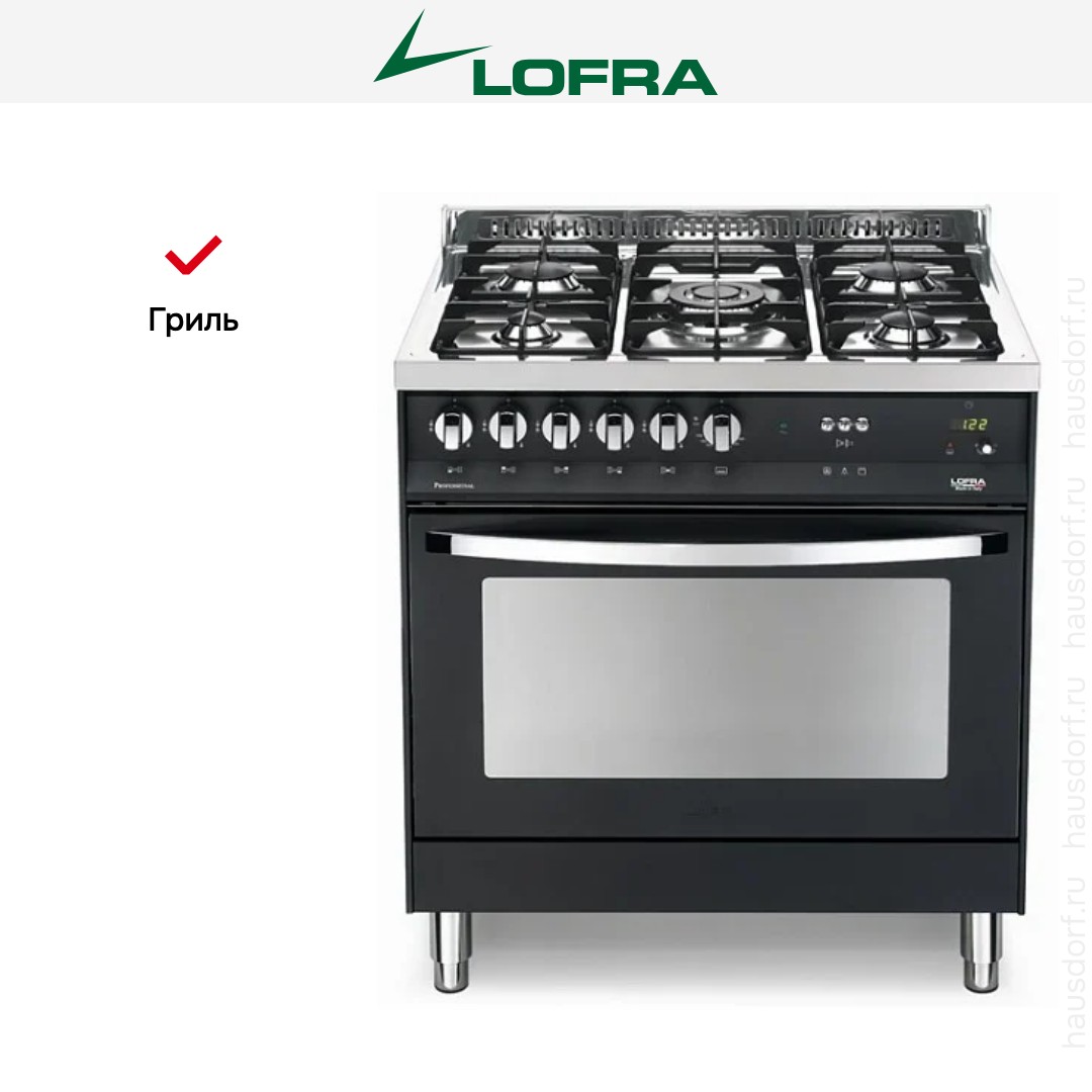 Комбинированная плита Lofra PNMG86GVT/C — отличный выбор как для квартиры, так и для частного дома. Цвет корпуса черный, он гармонично сочетается с мебелью и техникой похожих оттенков, а также может интересно выглядеть на контрасте с ними. Для управления используется удобная и понятная механическая система. Благодаря ей выбирать режимы приготовления и настраивать параметры температуры очень просто. Основная информация о процессе отображается на дисплее. Переключатели не только выполняют техническую функцию, но и поддерживают общий дизайн; тип элементов: поворотные + кнопки.