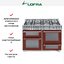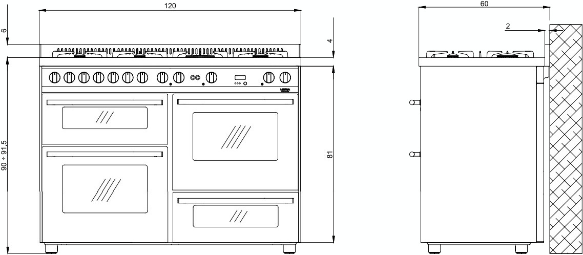 Ширина варочных центров — параметр, которых варьируется в самых больших пределах. Она зависит прежде всего от характеристик модели, в частности, от количества духовок. Производители предлагают модели минимальной шириной 59-60 см с одной духовкой. В магазинах также представлены модели с одной духовкой увеличенной ширины, которая достигает 90 см. Такую же ширину могут иметь варочные центры с двумя духовками, расположенными бок о бок. Модели Lofra с тремя духовками имеют ширину 120 см, а максимальная ширина около 196-200 см отличает модели Restart с дровяной печью и несколькими духовками.