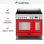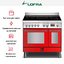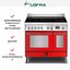 Варочный центр Lofra PRD96MFTE-5I поражает стильным дизайном Venezia в насыщенном красном цвете и аккуратными элементами из нержавеющей стали. Габариты 85—90.5×90×60 см делают прибор заметным акцентом в кухне и при этом совместимым со стандартными нишами. Передняя панель с дисплеем и электронной частью управления смотрится современно и удобна в уходе. Откидная дверца духовки с тремя слоями стекла и съемным внутренним стеклом обеспечивает безопасность и простоту обслуживания.