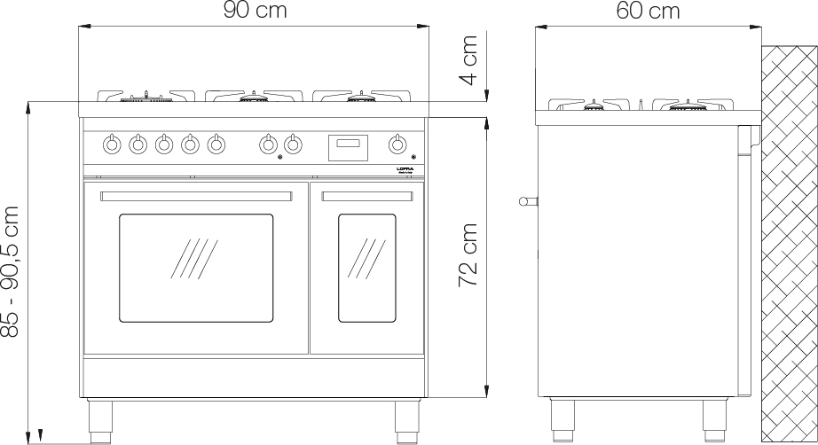Ширина варочных центров — параметр, которых варьируется в самых больших пределах. Она зависит прежде всего от характеристик модели, в частности, от количества духовок. Производители предлагают модели минимальной шириной 59-60 см с одной духовкой. В магазинах также представлены модели с одной духовкой увеличенной ширины, которая достигает 90 см. Такую же ширину могут иметь варочные центры с двумя духовками, расположенными бок о бок. Модели Lofra с тремя духовками имеют ширину 120 см, а максимальная ширина около 196-200 см отличает модели Restart с дровяной печью и несколькими духовками.
