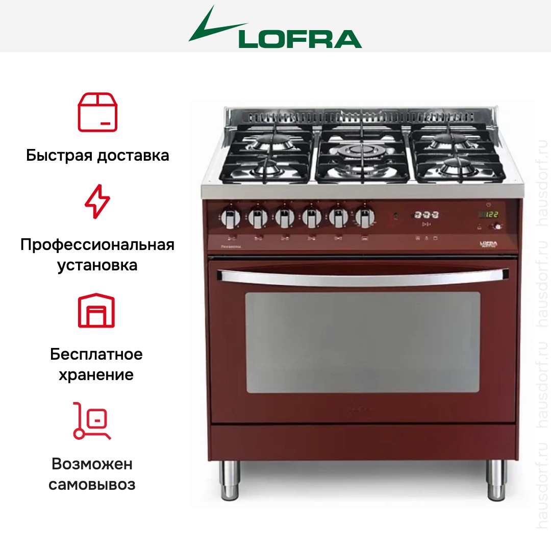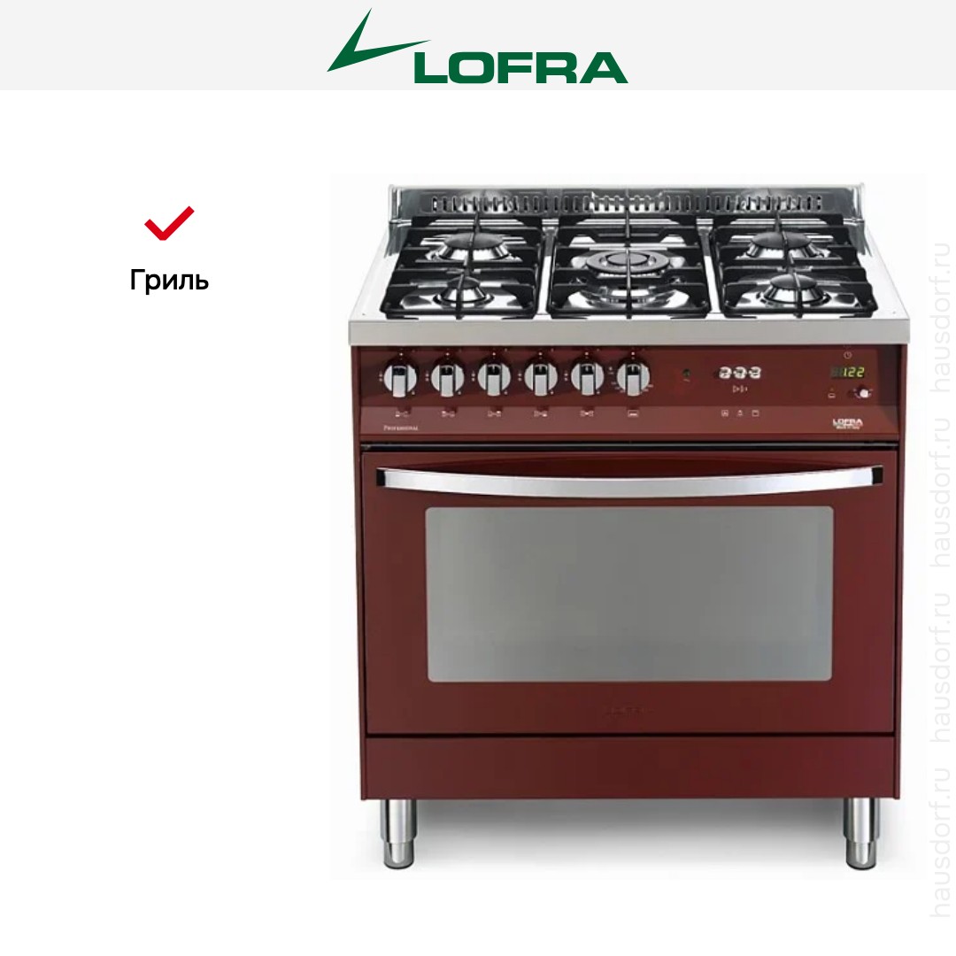 Комбинированная плита Lofra PRG86GVT/C — отличный выбор как для квартиры, так и для частного дома. Цвет корпуса бордо, он гармонично сочетается с мебелью и техникой похожих оттенков, а также может интересно выглядеть на контрасте с ними. Для управления используется удобная и понятная механическая система. Благодаря ей выбирать режимы приготовления и настраивать параметры температуры очень просто. Основная информация о процессе отображается на дисплее. Переключатели не только выполняют техническую функцию, но и поддерживают общий дизайн; тип элементов: поворотные + кнопки.