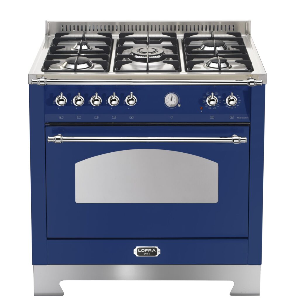 Комбинированная плита Lofra RBLG96MFT/Ci Chrome — отличный выбор как для квартиры, так и для частного дома. Цвет корпуса синий, он гармонично сочетается с мебелью и техникой похожих оттенков, а также может интересно выглядеть на контрасте с ними. Для управления используется удобная и понятная механическая система. Благодаря ей выбирать режимы приготовления и настраивать параметры температуры очень просто. Переключатели не только выполняют техническую функцию, но и поддерживают общий дизайн; тип элементов: поворотные.