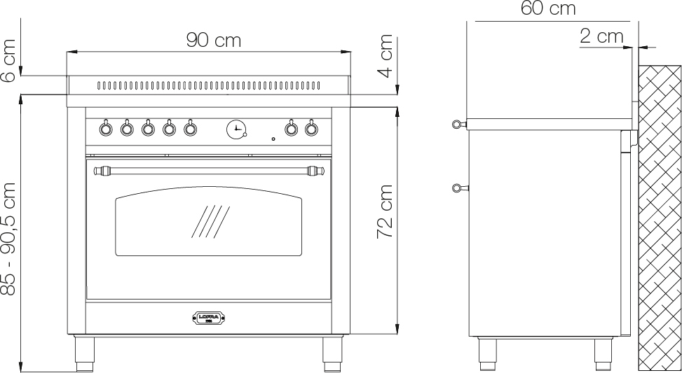 Ширина варочных центров — параметр, которых варьируется в самых больших пределах. Она зависит прежде всего от характеристик модели, в частности, от количества духовок. Производители предлагают модели минимальной шириной 59-60 см с одной духовкой. В магазинах также представлены модели с одной духовкой увеличенной ширины, которая достигает 90 см. Такую же ширину могут иметь варочные центры с двумя духовками, расположенными бок о бок. Модели Lofra с тремя духовками имеют ширину 120 см, а максимальная ширина около 196-200 см отличает модели Restart с дровяной печью и несколькими духовками.