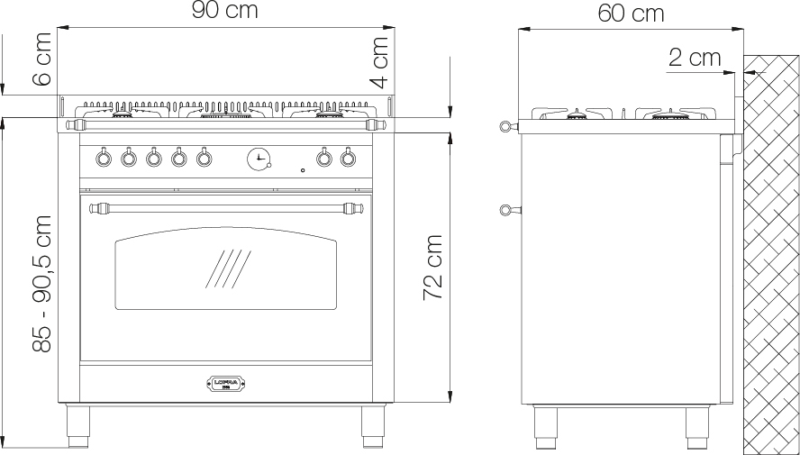 Ширина варочных центров — параметр, которых варьируется в самых больших пределах. Она зависит прежде всего от характеристик модели, в частности, от количества духовок. Производители предлагают модели минимальной шириной 59-60 см с одной духовкой. В магазинах также представлены модели с одной духовкой увеличенной ширины, которая достигает 90 см. Такую же ширину могут иметь варочные центры с двумя духовками, расположенными бок о бок. Модели Lofra с тремя духовками имеют ширину 120 см, а максимальная ширина около 196-200 см отличает модели Restart с дровяной печью и несколькими духовками.