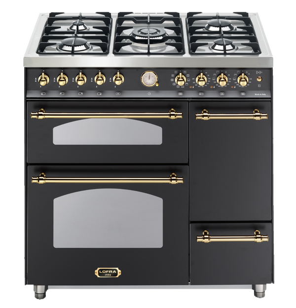 Комбинированная плита Lofra RNMT96MF2ET/CIF Brass — отличный выбор как для квартиры, так и для частного дома. Цвет корпуса черный, он гармонично сочетается с мебелью и техникой похожих оттенков, а также может интересно выглядеть на контрасте с ними. Для управления используется удобная и понятная механическая система. Благодаря ей выбирать режимы приготовления и настраивать параметры температуры очень просто. Переключатели не только выполняют техническую функцию, но и поддерживают общий дизайн; тип элементов: поворотные.
