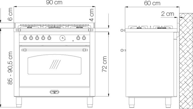 Ширина варочных центров — параметр, которых варьируется в самых больших пределах. Она зависит прежде всего от характеристик модели, в частности, от количества духовок. Производители предлагают модели минимальной шириной 59-60 см с одной духовкой. В магазинах также представлены модели с одной духовкой увеличенной ширины, которая достигает 90 см. Такую же ширину могут иметь варочные центры с двумя духовками, расположенными бок о бок. Модели Lofra с тремя духовками имеют ширину 120 см, а максимальная ширина около 196-200 см отличает модели Restart с дровяной печью и несколькими духовками.