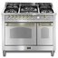 Ширина варочных центров — параметр, которых варьируется в самых больших пределах. Она зависит прежде всего от характеристик модели, в частности, от количества духовок. Производители предлагают модели минимальной шириной 59-60 см с одной духовкой. В магазинах также представлены модели с одной духовкой увеличенной ширины, которая достигает 90 см. Такую же ширину могут иметь варочные центры с двумя духовками, расположенными бок о бок. Модели Lofra с тремя духовками имеют ширину 120 см, а максимальная ширина около 196-200 см отличает модели Restart с дровяной печью и несколькими духовками.