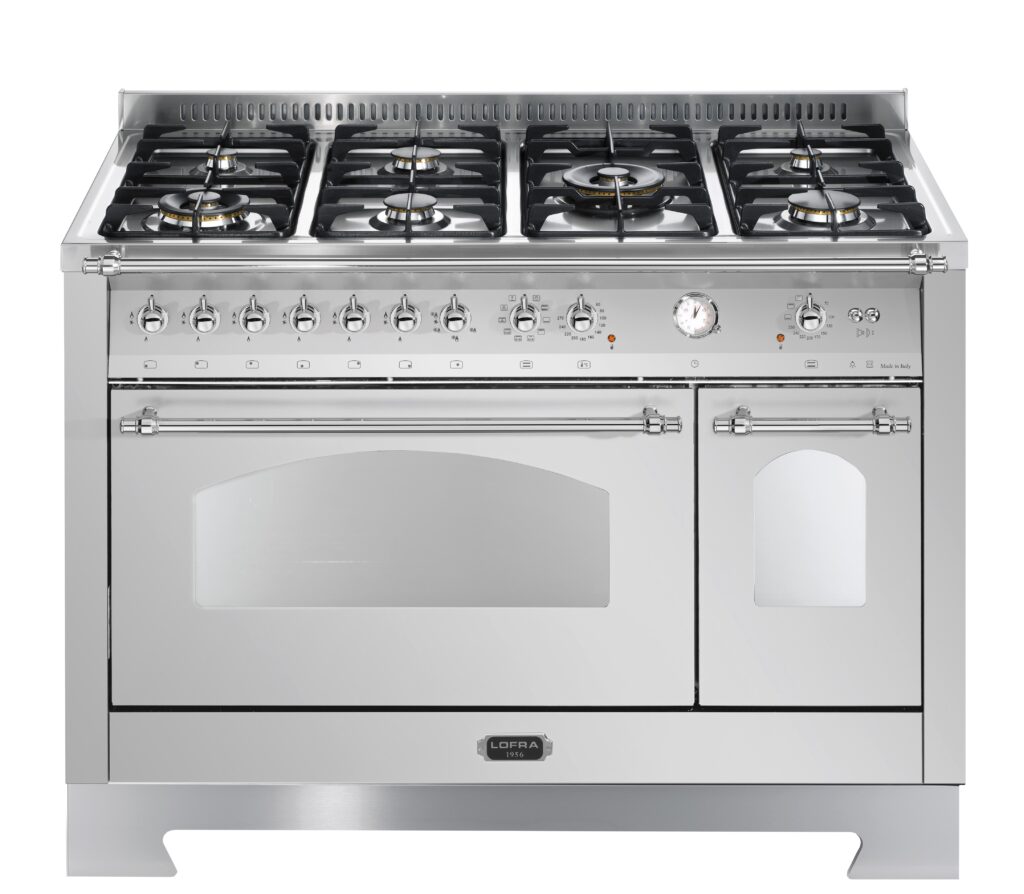 Ширина варочных центров — параметр, которых варьируется в самых больших пределах. Она зависит прежде всего от характеристик модели, в частности, от количества духовок. Производители предлагают модели минимальной шириной 59-60 см с одной духовкой. В магазинах также представлены модели с одной духовкой увеличенной ширины, которая достигает 90 см. Такую же ширину могут иметь варочные центры с двумя духовками, расположенными бок о бок. Модели Lofra с тремя духовками имеют ширину 120 см, а максимальная ширина около 196-200 см отличает модели Restart с дровяной печью и несколькими духовками.