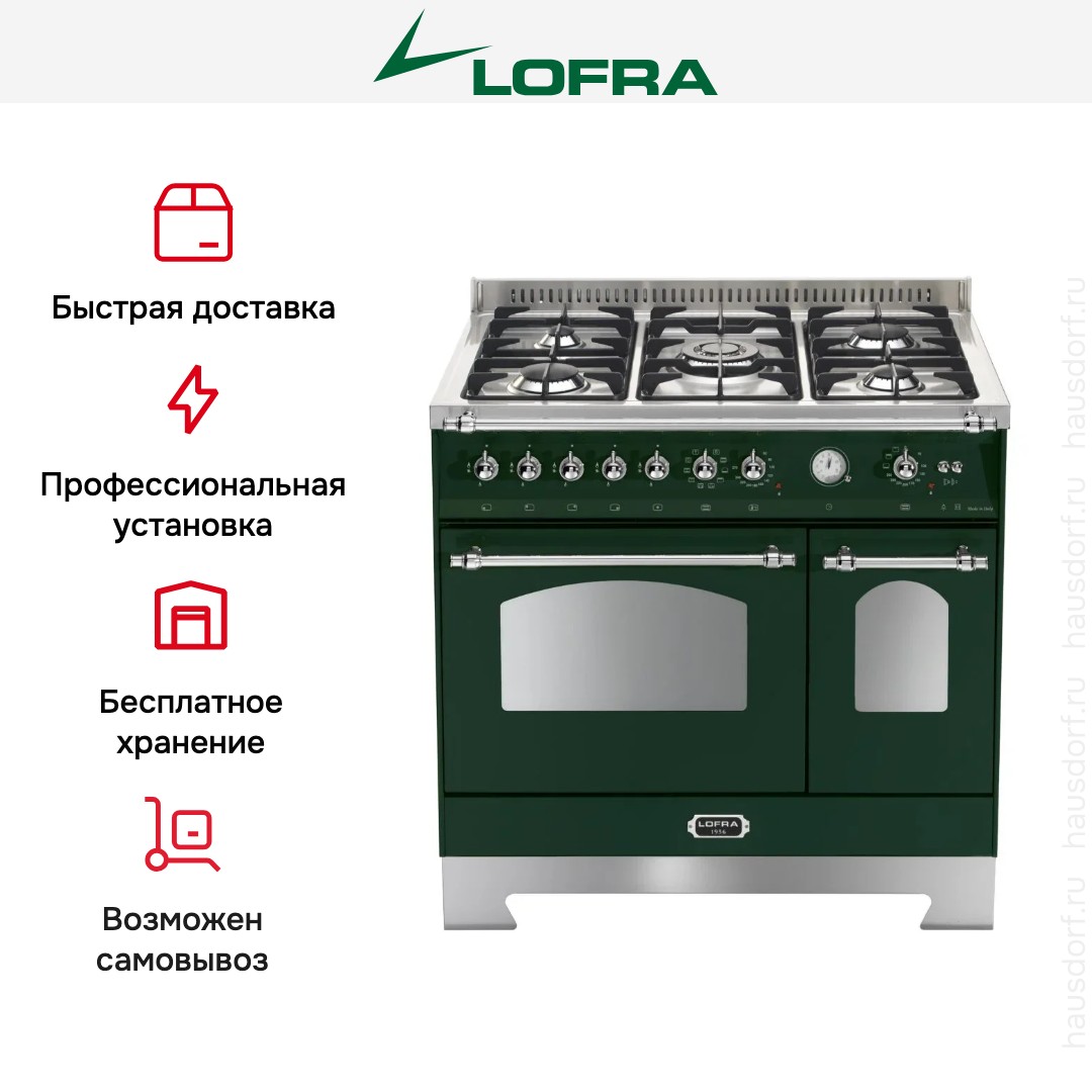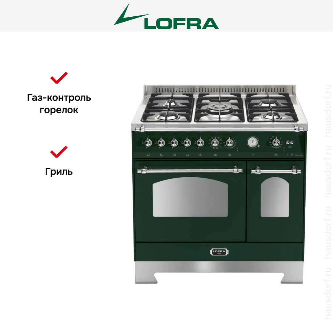 Комбинированная плита Lofra RVD96MFTE/Ci Chrome — отличный выбор как для квартиры, так и для частного дома. Цвет корпуса зеленый, он гармонично сочетается с мебелью и техникой похожих оттенков, а также может интересно выглядеть на контрасте с ними. Для управления используется удобная и понятная механическая система. Благодаря ей выбирать режимы приготовления и настраивать параметры температуры очень просто. Переключатели не только выполняют техническую функцию, но и поддерживают общий дизайн; тип элементов: поворотные.