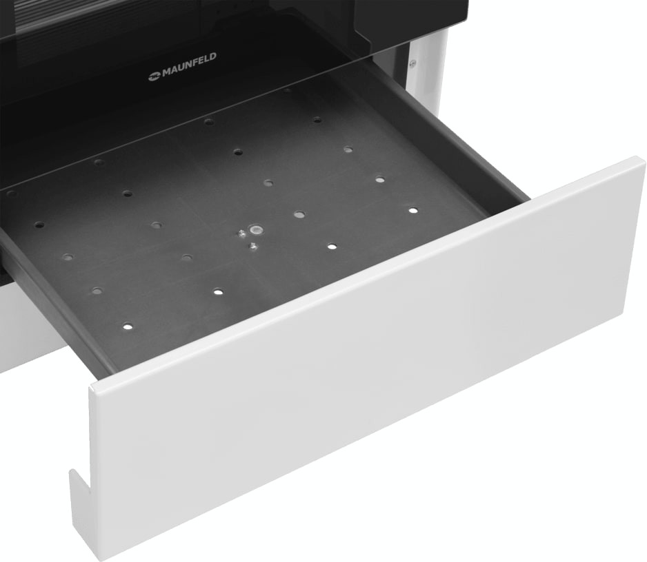 Электрическая плита Maunfeld MEC511CW10TD — отличный выбор как для квартиры, так и для частного дома. Цвет корпуса белый, он гармонично сочетается с мебелью и техникой похожих оттенков, а также может интересно выглядеть на контрасте с ними. На внутренней поверхности двери расположена таблица доступных рецептов — полезная и необычная фишка. Для управления используется удобная и понятная электронная система. Благодаря ей выбирать режимы приготовления и настраивать параметры температуры очень просто. Основная информация о процессе отображается на дисплее. Переключатели не только выполняют техническую функцию, но и поддерживают общий дизайн; тип элементов: сенсорные.