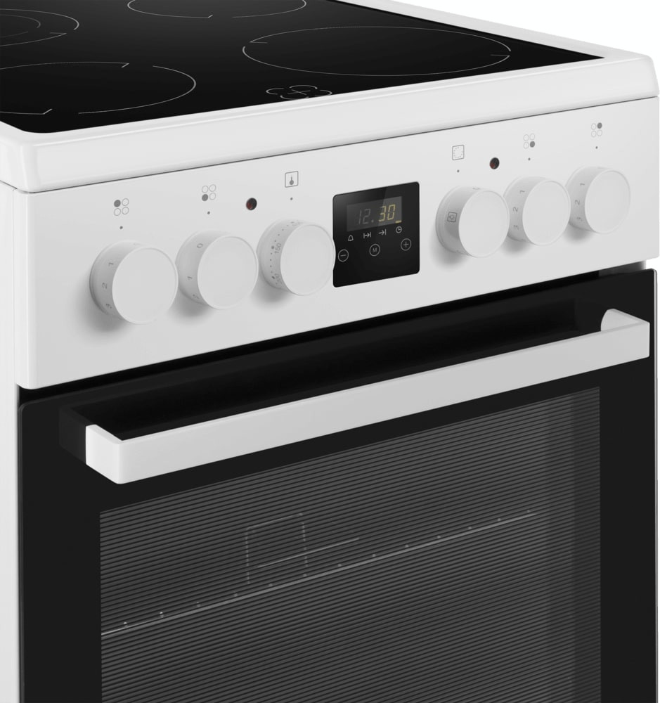 Электрическая плита Maunfeld MEC57CW08TD — отличный выбор как для квартиры, так и для частного дома. Цвет корпуса белый, он гармонично сочетается с мебелью и техникой похожих оттенков, а также может интересно выглядеть на контрасте с ними. На внутренней поверхности двери расположена таблица доступных рецептов — полезная и необычная фишка. Для управления используется удобная и понятная электронная система. Благодаря ей выбирать режимы приготовления и настраивать параметры температуры очень просто. Основная информация о процессе отображается на дисплее. Переключатели не только выполняют техническую функцию, но и поддерживают общий дизайн; тип элементов: сенсорные + поворотные.