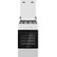 Плита выглядит компактной и собранной в единый корпус высотой 89 см, шириной 49.5 см и глубиной 64.5 см. Корпус белого цвета с контрастной фурнитурой белого/черного оттенка, откидной дверцей духового шкафа с двумя стеклами и верхней защитной панелью. На поверхности расположена составная чугунная решетка для посуды, а управление вынесено на аналоговую панель с поворотными переключателями и кнопками. Регулируемые по высоте ножки помогают выровнять прибор на неровной кухонной поверхности.