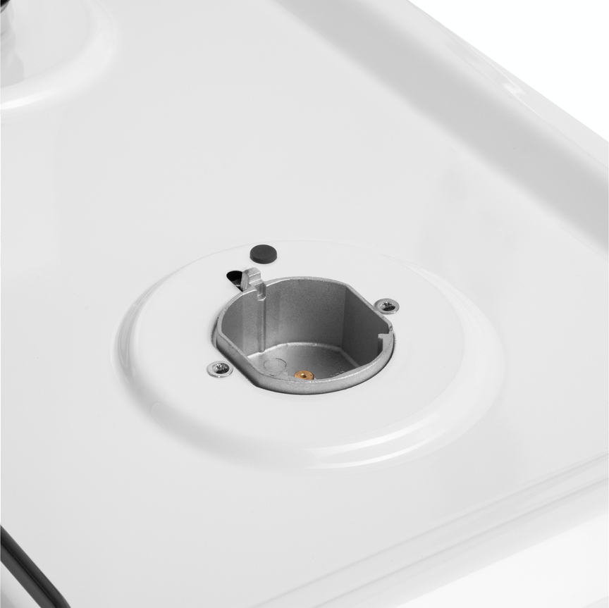 В данной модели установлена газовая варочная поверхность — эффективный нагрев, специальные механизмы для защиты вас от ожогов, плавная регулировка мощности. Стандартное количество конфорок — 4 штуки — подходит большинству пользователей. Панель сделана из металла, который обеспечивает надежность и долгий срок службы; за ней легко ухаживать.