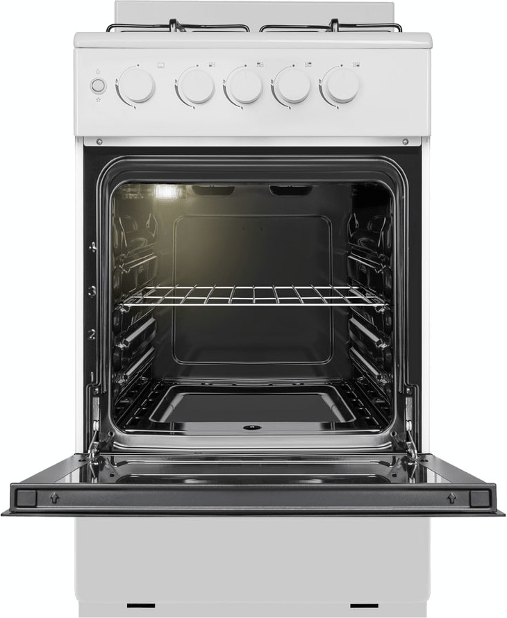 В данной модели установлена газовая варочная поверхность — эффективный нагрев, специальные механизмы для защиты вас от ожогов, плавная регулировка мощности. Стандартное количество конфорок — 4 штуки — подходит большинству пользователей. Панель сделана из металла, который обеспечивает надежность и долгий срок службы; за ней легко ухаживать.