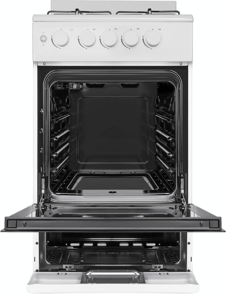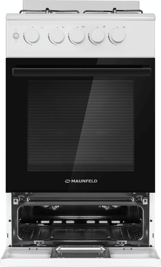 Газовая плита Maunfeld MGC50GEW08 — отличный выбор как для квартиры, так и для частного дома. Цвет корпуса белый, он гармонично сочетается с мебелью и техникой похожих оттенков, а также может интересно выглядеть на контрасте с ними. Для управления используется удобная и понятная механическая система. Благодаря ей выбирать режимы приготовления и настраивать параметры температуры очень просто. Переключатели не только выполняют техническую функцию, но и поддерживают общий дизайн; тип элементов: поворотные + кнопки.