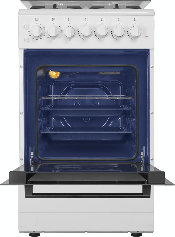 В данной модели установлена газовая варочная поверхность — эффективный нагрев, специальные механизмы для защиты вас от ожогов, плавная регулировка мощности. Стандартное количество конфорок — 4 штуки — подходит большинству пользователей. Панель сделана из металла, который обеспечивает надежность и долгий срок службы; за ней легко ухаживать.