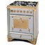 Гораздо разнообразнее представлена фурнитура в моделях в классическом, средиземноморском, деревенском или ретро-дизайне. Так, модели производства Lofra оснащаются фигурными рейлингами и поворотными переключателями цвета латуни, состаренного серебра, хрома, золота. В варочных центрах La Cornue интерес представляет круглая накладная ручка дверцы духовки серебристого цвета. Фурнитурой в стиле ретро оснащаются варочные центры производства Smeg, Kaiser, Bertazzoni, но особенно разнообразны и оригинальны модели производства итальянской компании Restart с фурнитурой из меди и латуни. Каждая такая модель изготавливается по индивидуальному проекту, и покупатель может выбрать цвет и форму переключателей, дверцы и ручек духовых шкафов и другие элементы дизайна.
