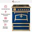 Варочный центр ELG 435 G оборудован газовым духовым шкафом и газовой варочной поверхностью. Ручка-держатель и рамка из латуни эффектно смотрятся в общем образе. Декоративные панели закрывают аналоговые часы и стеклянную поверхность дверцы духового шкафа, из-за чего модель выглядит элегантно и стильно.