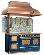 Гораздо разнообразнее представлена фурнитура в моделях в классическом, средиземноморском, деревенском или ретро-дизайне. Так, модели производства Lofra оснащаются фигурными рейлингами и поворотными переключателями цвета латуни, состаренного серебра, хрома, золота. В варочных центрах La Cornue интерес представляет круглая накладная ручка дверцы духовки серебристого цвета. Фурнитурой в стиле ретро оснащаются варочные центры производства Smeg, Kaiser, Bertazzoni, но особенно разнообразны и оригинальны модели производства итальянской компании Restart с фурнитурой из меди и латуни. Каждая такая модель изготавливается по индивидуальному проекту, и покупатель может выбрать цвет и форму переключателей, дверцы и ручек духовых шкафов и другие элементы дизайна.