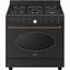 Варочный центр Smeg выполнен в классическом дизайне Coloniale — он отлично впишется в интерьер с обилием декоративных элементов. Латунная фурнитура выделяет модель темного цвета. И варочная панель, и духовой шкаф управляются поворотными ручками на фронтальной панели. Аналоговый таймер помогает следить за показателями времени и температуры.