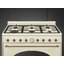 Варочный центр Smeg кремового цвета выполнен в классическом дизайне Coloniale — он отлично впишется в интерьер с обилием декоративных элементов. Поворотные регуляторы и ручка двери латунного цвета. Панель управления механическая, по центру расположен аналоговый таймер, помогает следить за показателями времени и температуры.
