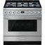 Устройства с тремя духовками также имеют один основной и две дополнительных шкафа разного объема: например, плиты Bertazzoni оснащены большой духовкой объемом 69 литров, средней объемом 54 литра и малой объемом 24 литра. Духовки располагаются в два ряда: две меньшие духовки в одном ряду, большая и ящик для посуды в другом.