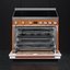 Устройства с тремя духовками также имеют один основной и две дополнительных шкафа разного объема: например, плиты Bertazzoni оснащены большой духовкой объемом 69 литров, средней объемом 54 литра и малой объемом 24 литра. Духовки располагаются в два ряда: две меньшие духовки в одном ряду, большая и ящик для посуды в другом.