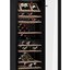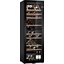 Стеклянная дверь — дополнительный изящный штрих к общему дизайну модели. Специальное покрытие защищает вино от влияния ультрафиолетовых лучей, которые проникают, если шкаф находится в солнечной комнате. Цвет корпуса — черный. Дверь можно перевесить на другую сторону, поэтому вариантов размещения его в доме становится больше.