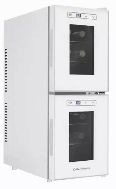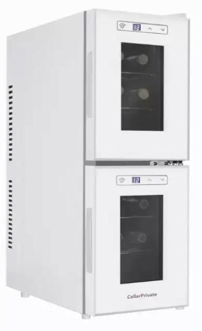Винный холодильник CellarPrivate CP012-2W имеет две температурные зоны, в которых одновременно можно хранить разные сорта алкоголя и выставлять разные сочетания настроек. Он устанавливается отдельно, что удобно, если у вас есть специальное помещение — кладовая, погреб и т.д. Благодаря компактным размерам данная модель — отличный выбор для офиса, гостиничного номера. Количество бутылок, которое можно разместить с учетом полной комплектации и из расчета объема бутылки 0,75 л, — 12 шт.